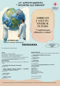 Il 25 ottobre 2025, presso l’Auditorium “G. D’Alessandro” dell’Ordine dei Medici Chirurghi e degli Odontoiatri di Benevento, si terrà il 49° appuntamento del ciclo “Incontri all’Ordine”, dal titolo “Ambiente e salute: vivere il futuro – Cambiamento climatico e salute”.